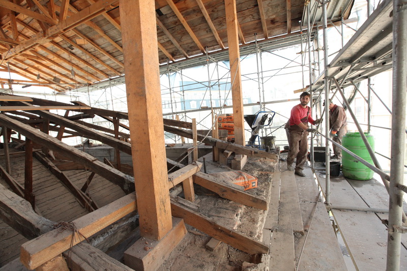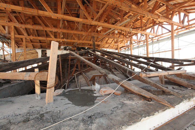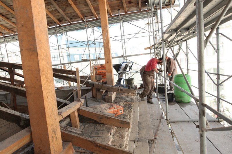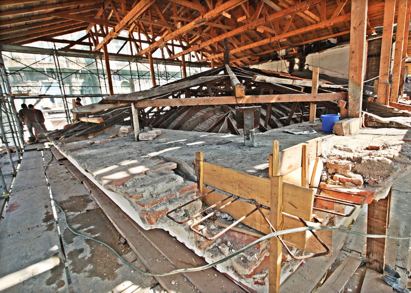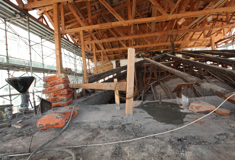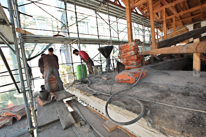 În acelaşi timp, se lucrează şi la partea de acoperiş, aşa cum se poate vedea din pozele Laurei Dobre (căreia îi mulţumim).