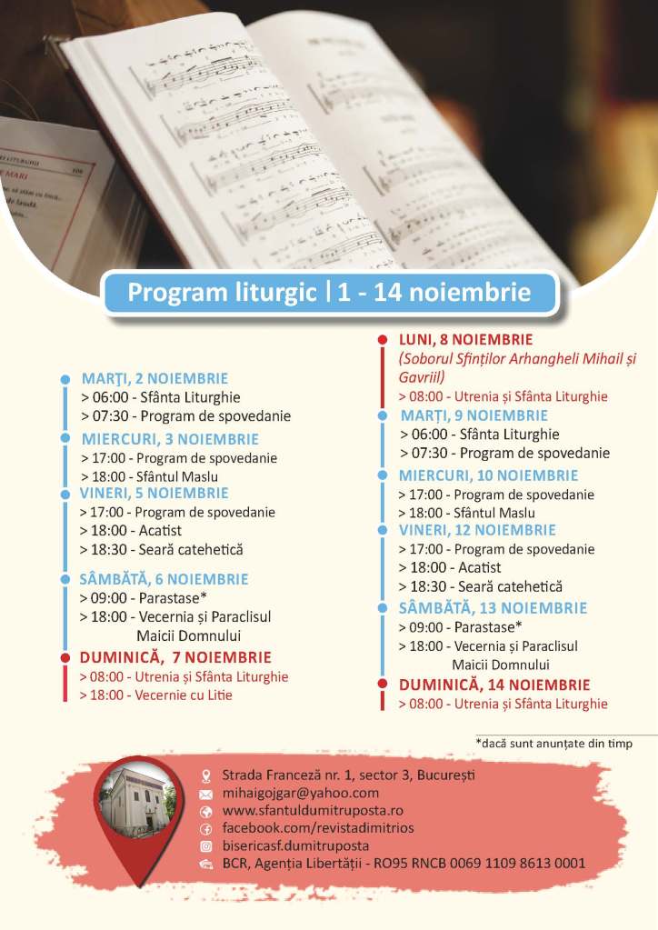 Program liturgic Pe 01/11/2021 De Sf. Dumitru PoştăÎn Uncategorized Partajează asta: Dă clic pentru a partaja pe X(Se deschide într-o fereastră nouă) X Dă clic pentru a partaja pe Facebook(Se deschide într-o fereastră nouă) Facebook Apreciază Încarc... Similare