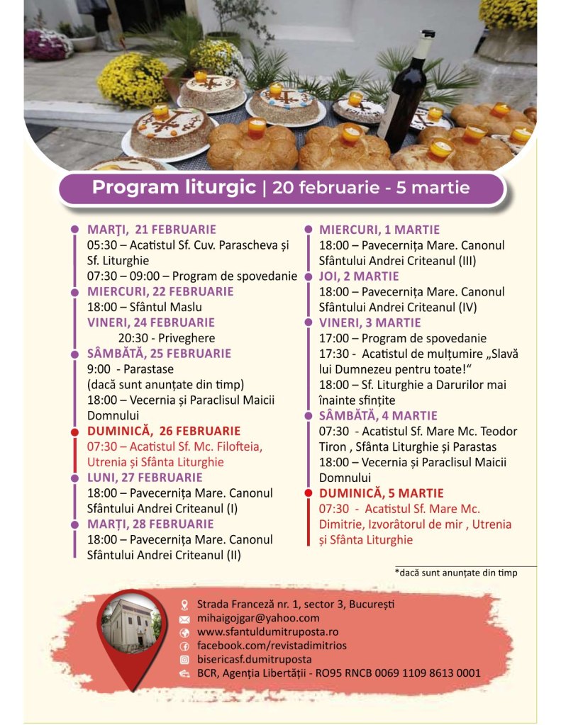 Program liturgic – 20 februarie-5 martie Pe 19/02/2023 De Sf. Dumitru PoştăÎn Uncategorized Partajează asta: Dă clic pentru a partaja pe X(Se deschide într-o fereastră nouă) X Dă clic pentru a partaja pe Facebook(Se deschide într-o fereastră nouă) Facebook Apreciază Încarc... Similare